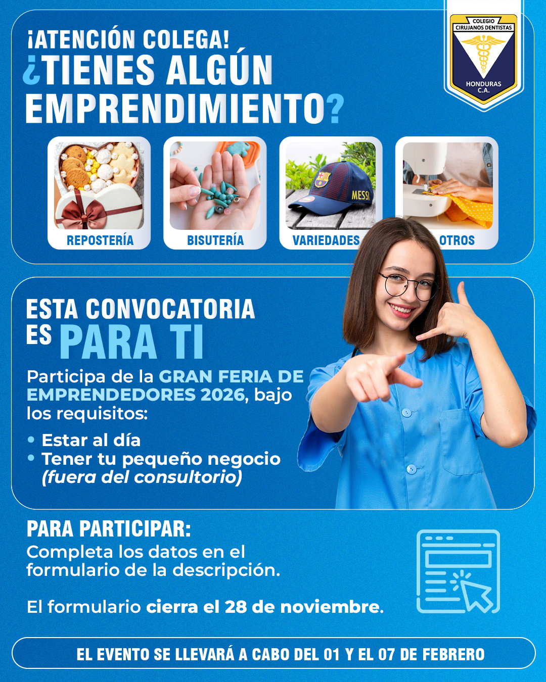 ¡Atención emprendedores! 🚀 El CCDH abre oficialmente la convocatoria para participar en la Gran Feria de Emprendedores 2026. Si tienes un proyecto, producto o servicio que merece ser visto, esta es tu oportunidad de destacarte, conectar y crecer.