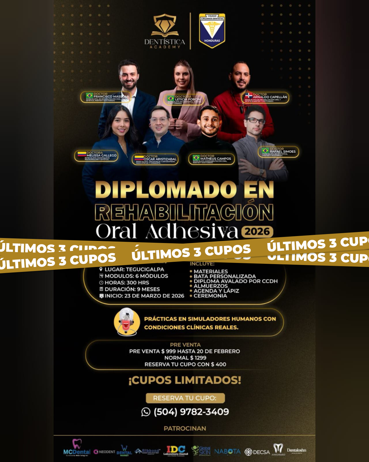 ⚠️ ¡ATENCIÓN! YA SON LOS ÚLTIMOS TRES CUPOS DISPONIBLES ⚠️ 🔥 Diplomado en Rehabilitación Oral Adhesiva 2026 🔥