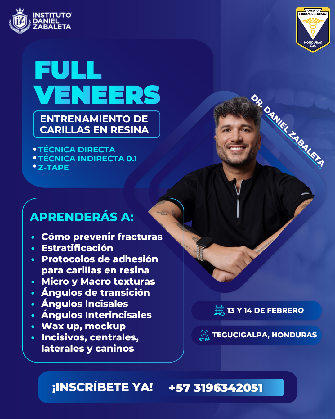 Eleva tu práctica clínica y domina el arte de las carillas en resina. ✨🦷Llega a Tegucigalpa el entrenamiento FULL VENEERS junto al Dr. Daniel Zabaleta 👨⚕️ .