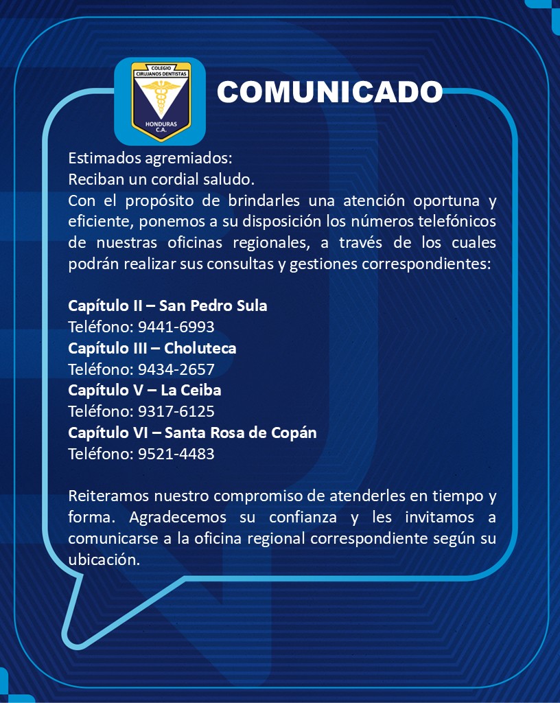 📢 DECLARACIÓN DE IMPUESTO SOBRE LA RENTA 2026… ¡TOTALMENTE GRATIS! 😱 El Colegio de Cirujanos Dentistas de Honduras siempre pensando en el bienestar de sus agremiados, les brinda este importante […]