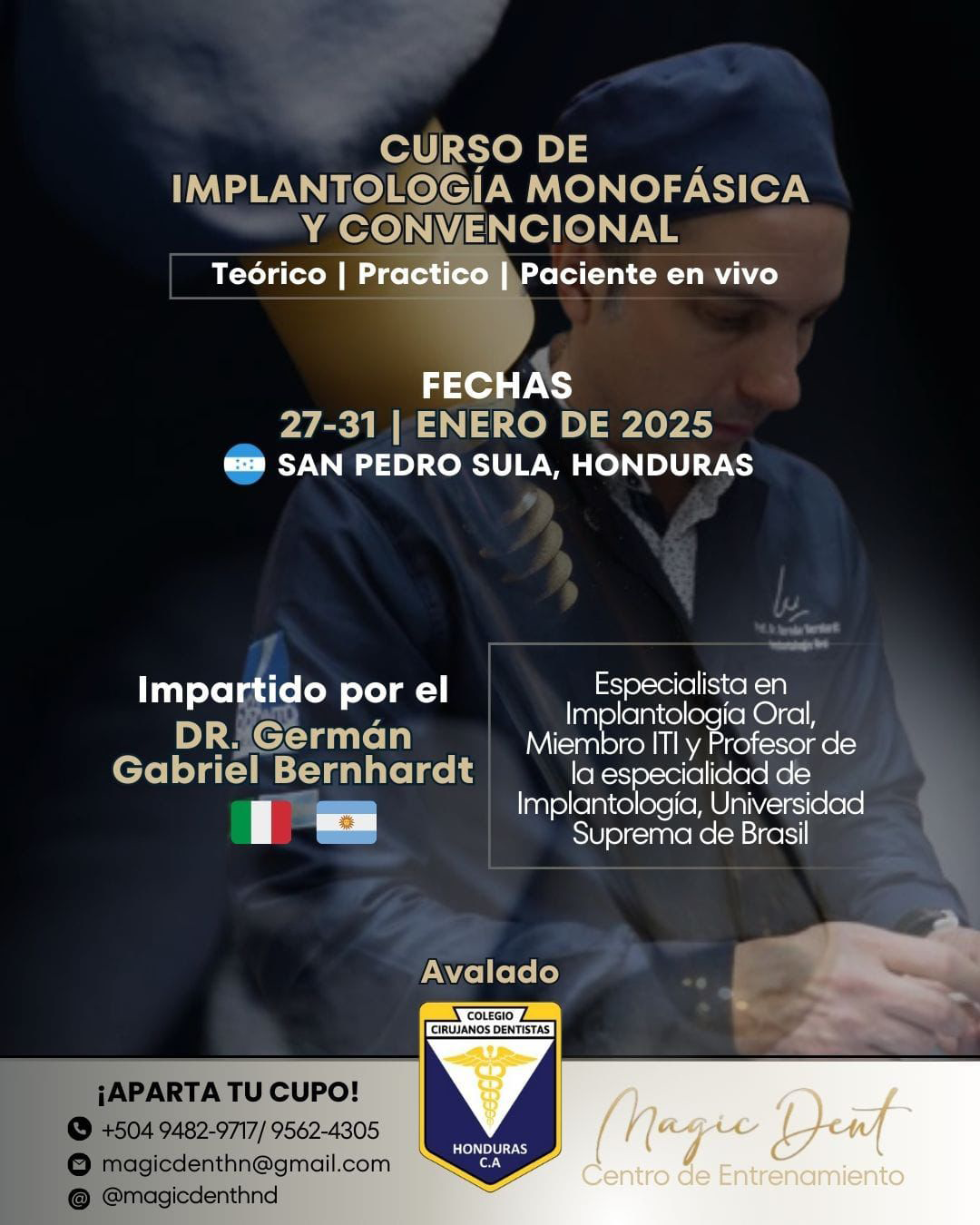 ¡Atención colegas en San Pedro Sula! No te pierdas el Curso de Implantología Monofásica y Convencional, impartido por el reconocido Dr. Germán Gabriel Bernhardt. ¡Aparta tu cupo hoy mismo! Contactos: […]