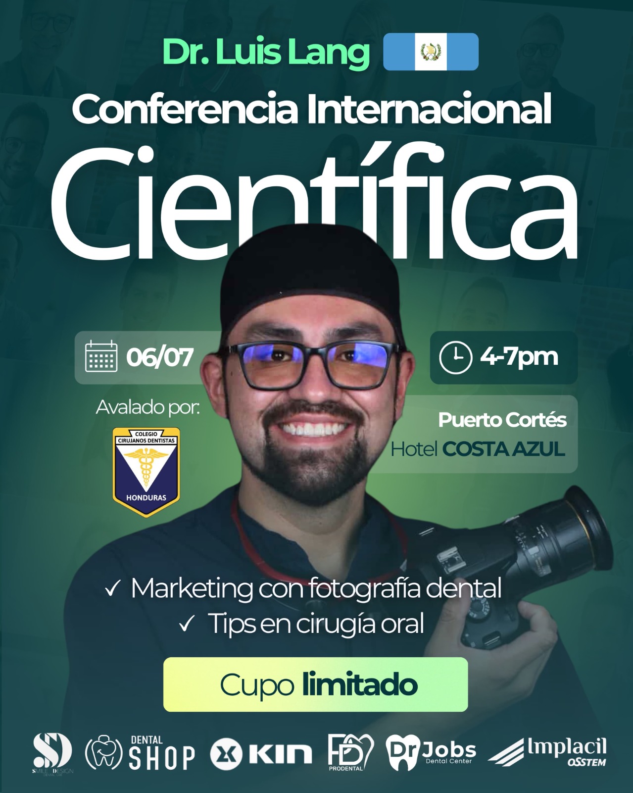 El Dr. Luis Lang , conferencista internacional, te compartirá lo mejor en marketing con fotografía dental y tips de cirugía oral . ¡Cupos limitados! ¡No te lo pierdas! #SeguimosCreciendo#ConstruyendoElCamino