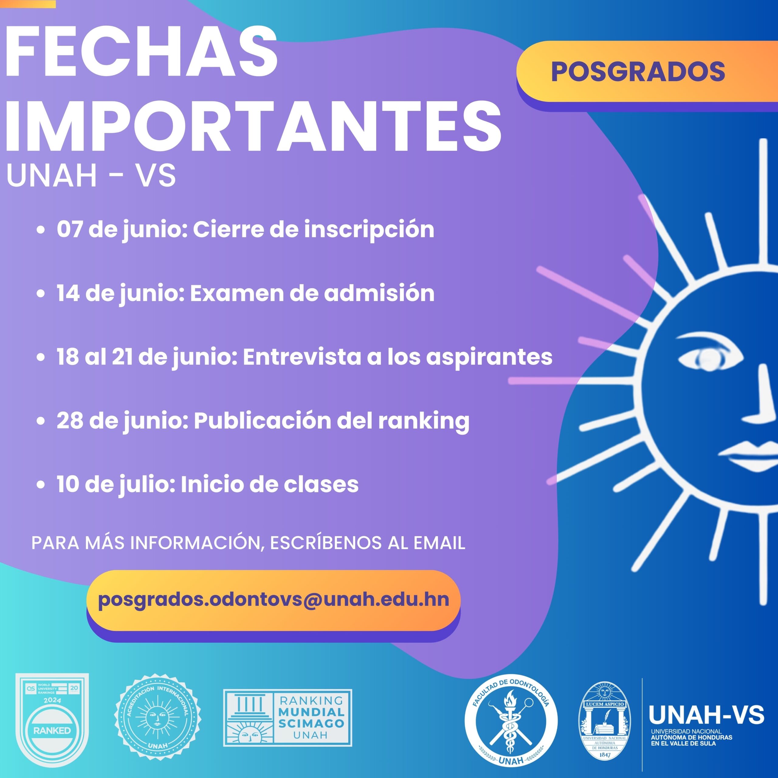 Atención, estimados colegas: La Universidad Nacional Autónoma de Honduras (UNAH – VS) comparte información importante sobre los posgrados. Favor de leer detenidamente. Para más información, pueden contactar a: posgrados.odontovs@unah.edu.hn (504) […]