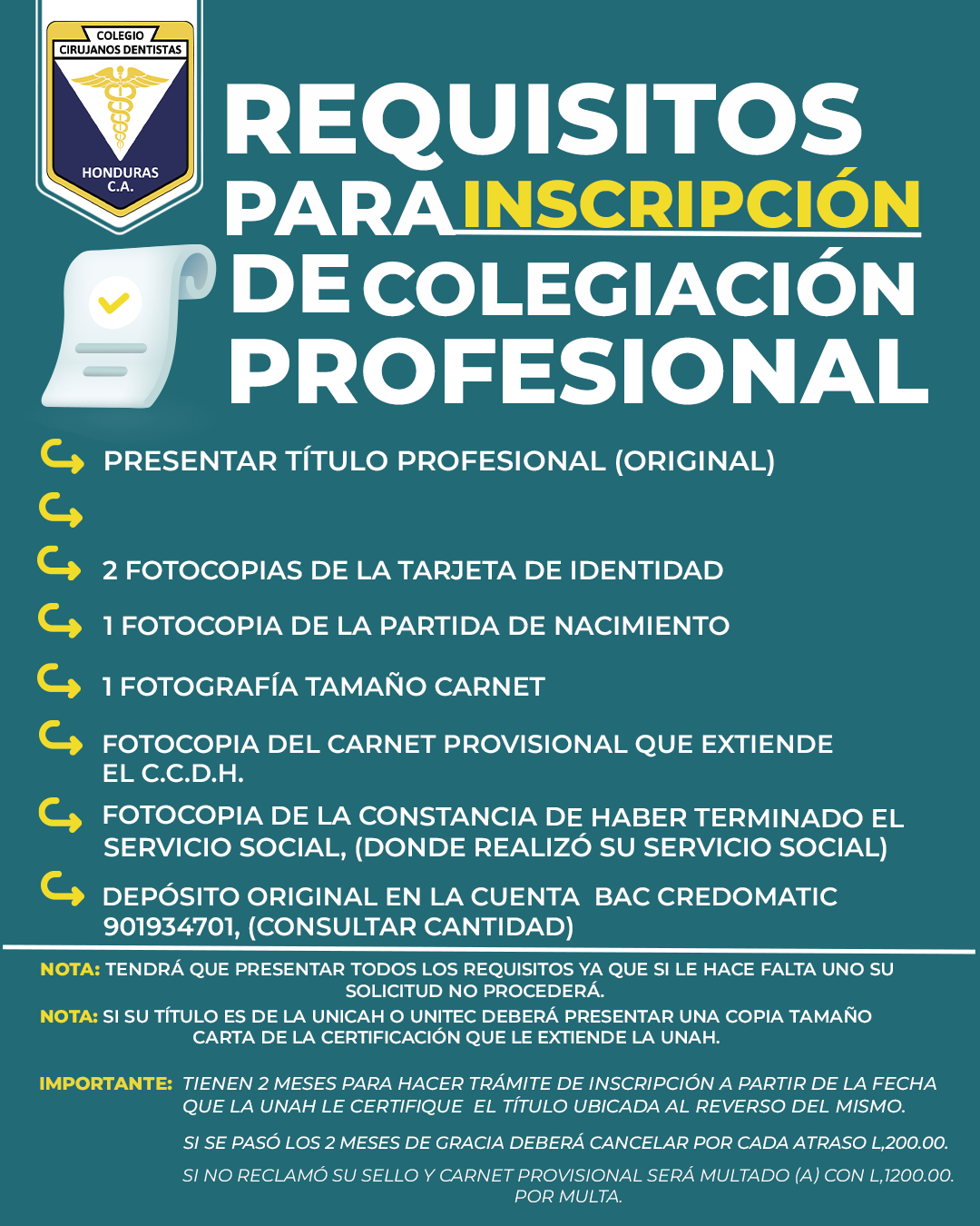 Colega, te compartimos lo requisitos para la correcta solicitud de tu colegiación provisional y profesional. Te esperamos en la sede de Tegucigalpa. #SeguimosCreciendo#ConstruyendoElCamino