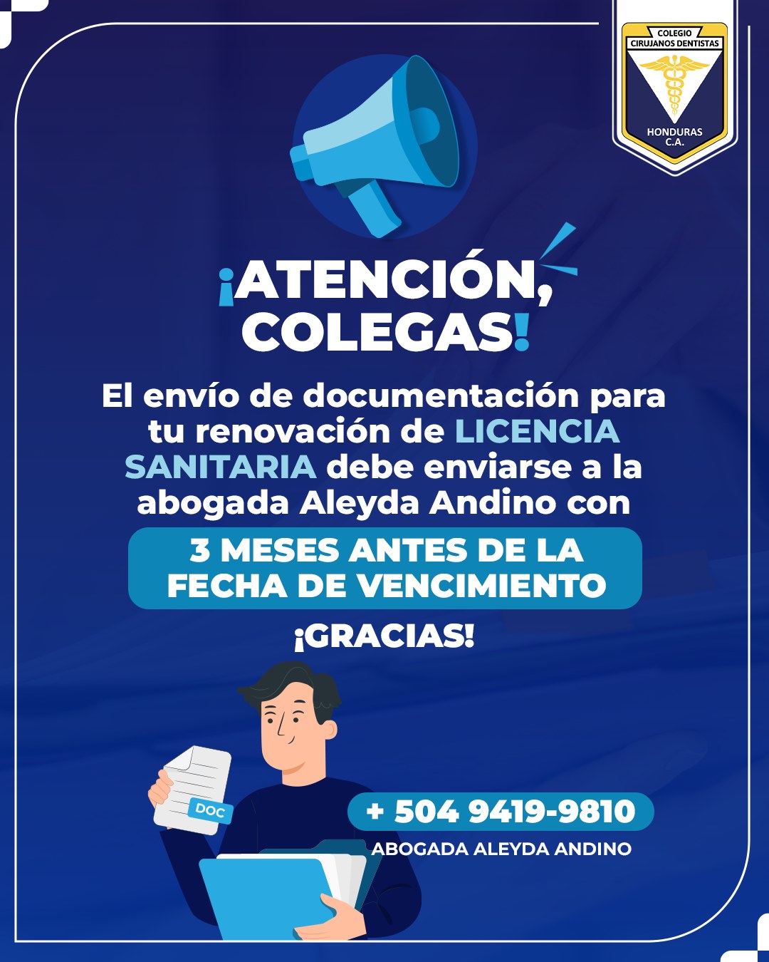 ¡Atención, colega! Recuerda que la documentación para la renovación de la Licencia Sanitaria debe entregarse con 3 meses de anticipación a la fecha de vencimiento, para completar los trámites a […]